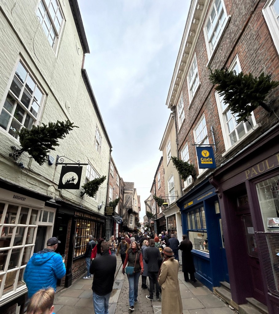 Otro de los lugares emblemáticos de York es Shambles Street, así que tras pasearme alrededor de la catedral, me fui a esa calle, repleta de gente como acostumbra (hasta cuatro tiendas de Harry Potter se pueden visitar en la misma; diría comprar, pero una varita por el precio que la venden, yo no la compraría, y muchos de sus visitantes, imagino que tampoco🤓).