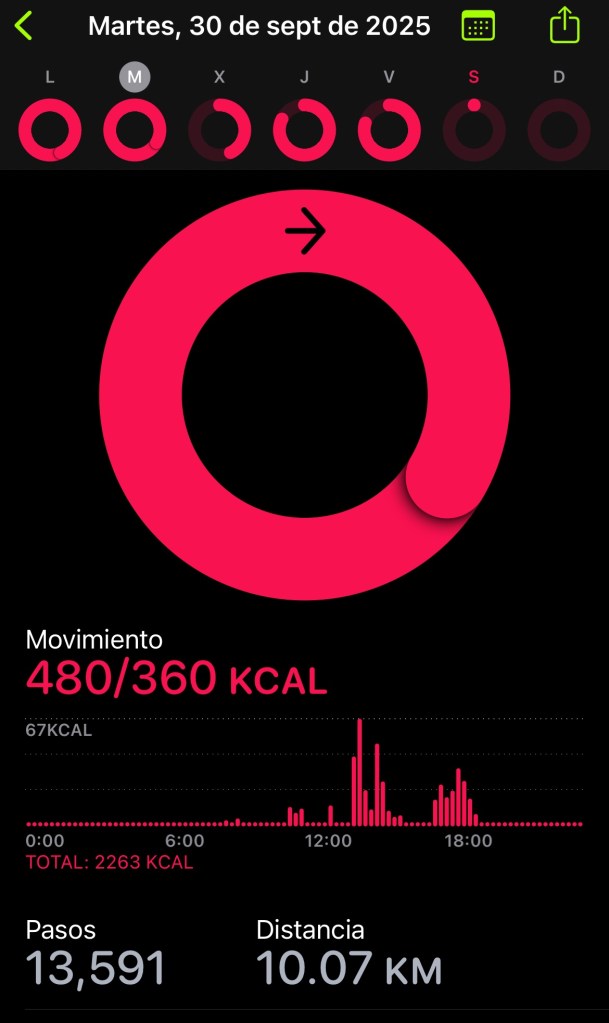 Who said that going shopping and doing household chores wasn’t exercise? Well, there you have the result. So, for the following three days, I went to the gym every day (3 days in October = 3 days at the gym; and I’ve already been one day more than in the whole of September. Time to recoup the money I wasted last month!!! 💪🏽😎), I also met my goal, even though the app didn’t mark it. I tried to synchronise both apps, gym and daily exercise, but it’s impossible. So if artificial intelligence isn’t capable enough to understand that I’ve been exercising, I know that I have. That’s good enough for me 😂.
